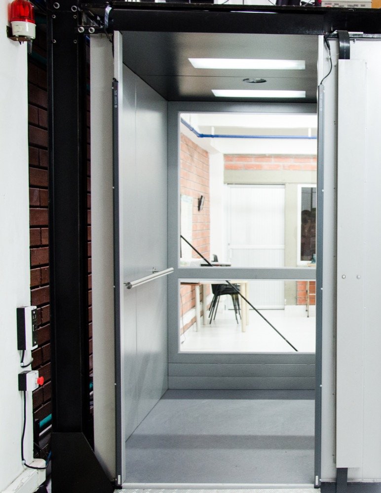 Nuestros ascensores son fabricados con puertas tipo batiente manual y cuentan con un seguro que solamente permite abrir la puerta en el piso donde se encuentre la cabina. Las demás puertas permanecen cerradas y bloqueadas por seguridad.