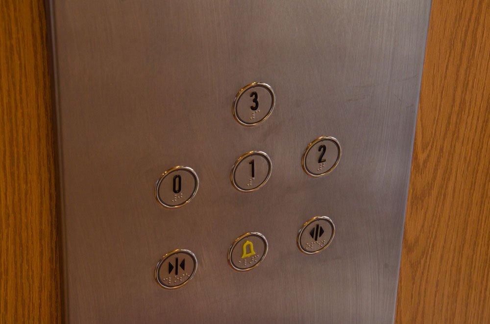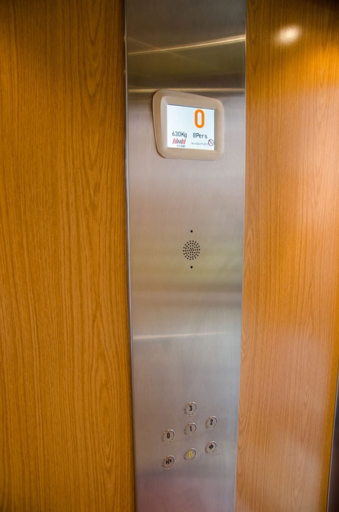 Su botonera en cabina es de piso a techo, fabricada en un panel de acero inoxidable el cual le da un toque moderno y distintivo al ascensor, allí se encuentran los botones de lujo tipo braille para cada uno de sus pisos, apertura y cierre de puertas así como también la alarma de emergencia.