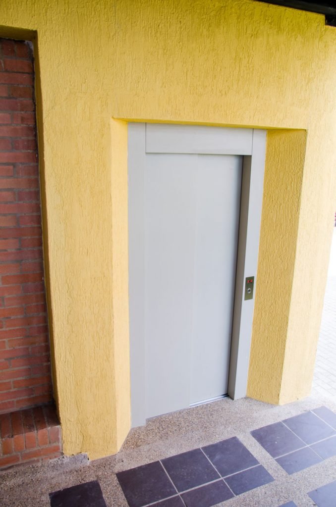 Cuenta con puertas automáticas de apertura lateral con una entrada libre de 80cm fabricadas en lamina Cold roll y pintura electrostática. En su marco cuenta con el botón tipo braille para llamada en cada uno de sus pisos.