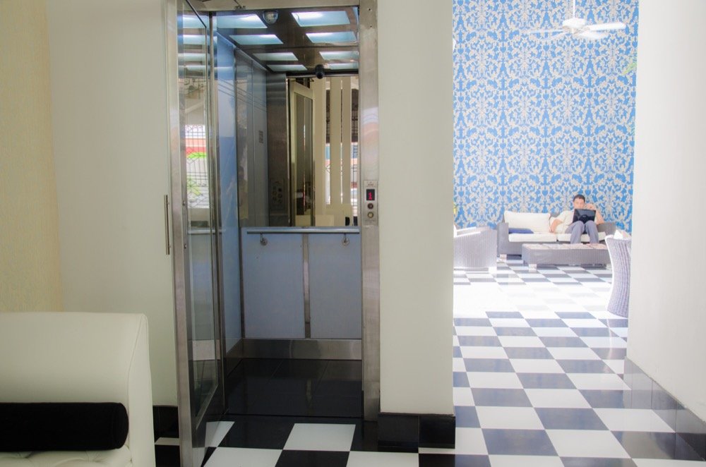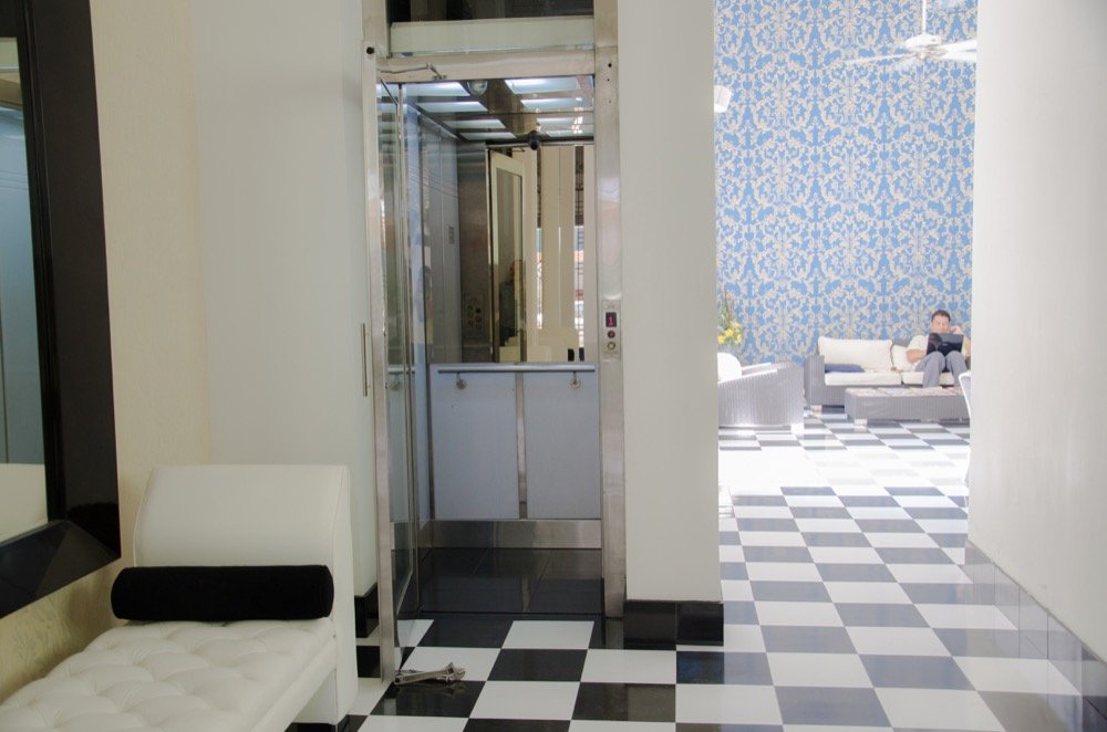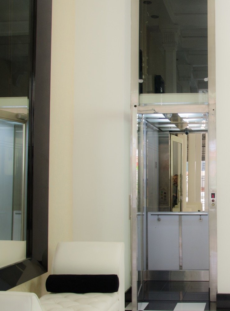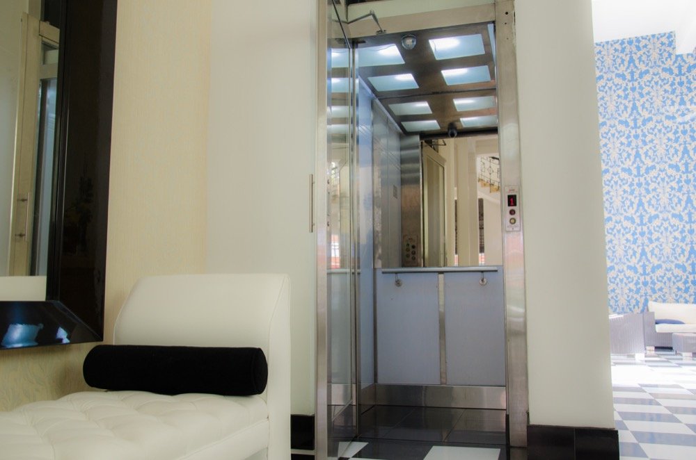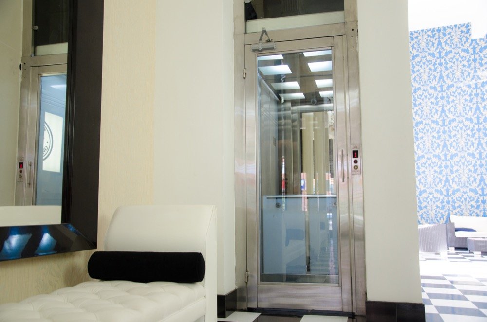 Al no contar con un foso o ducto para ascensor, el hotel requería un diseño personalizado. Los arquitectos adecuaron un espacio de 1.40 metros de ancho por 1.40 metros de fondo donde un ascensor estándar de puertas automáticas no se adaptaría fácilmente.