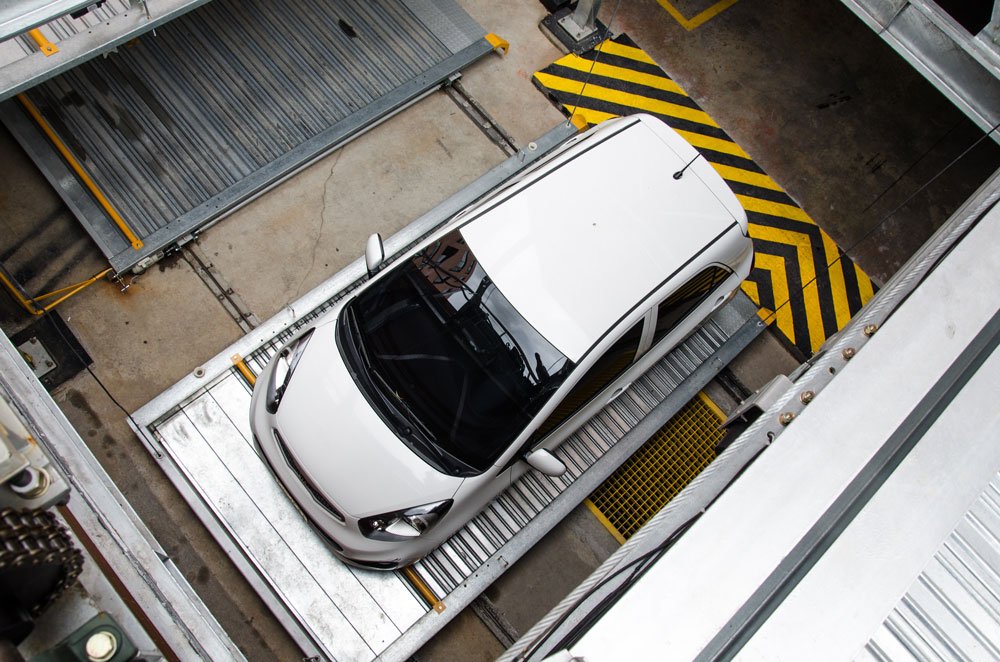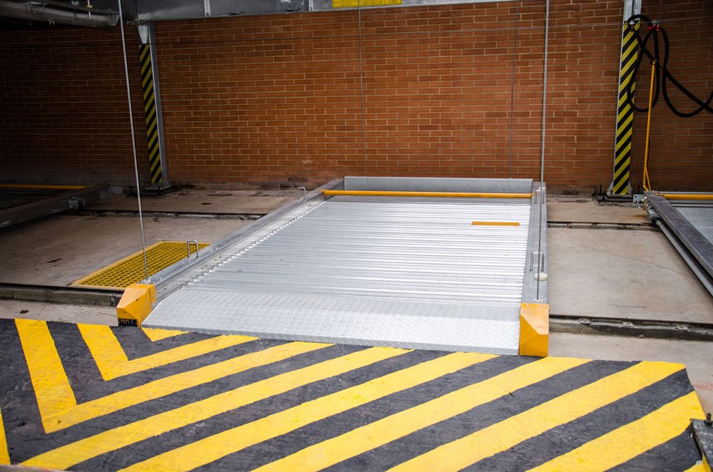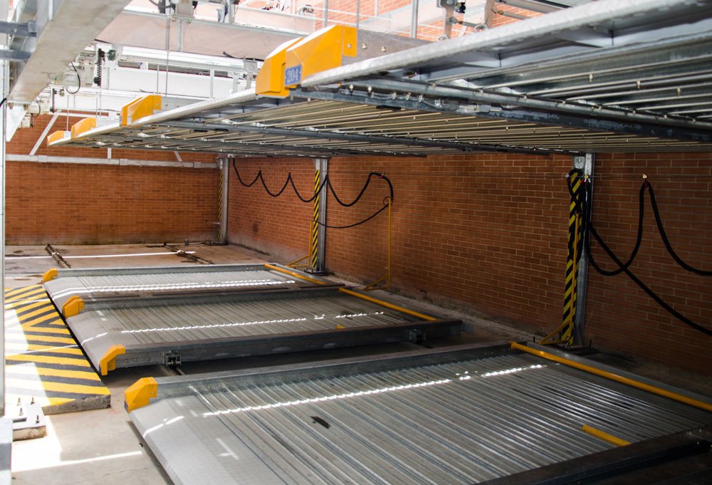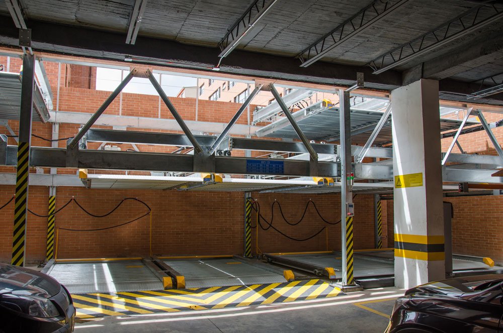 Este duplicador de parqueaderos automático fue diseñado en condiciones especiales para el edificio puesto que se requería triplicar la cantidad de estacionamientos en esta área y esto solo se podía lograr con este equipo.