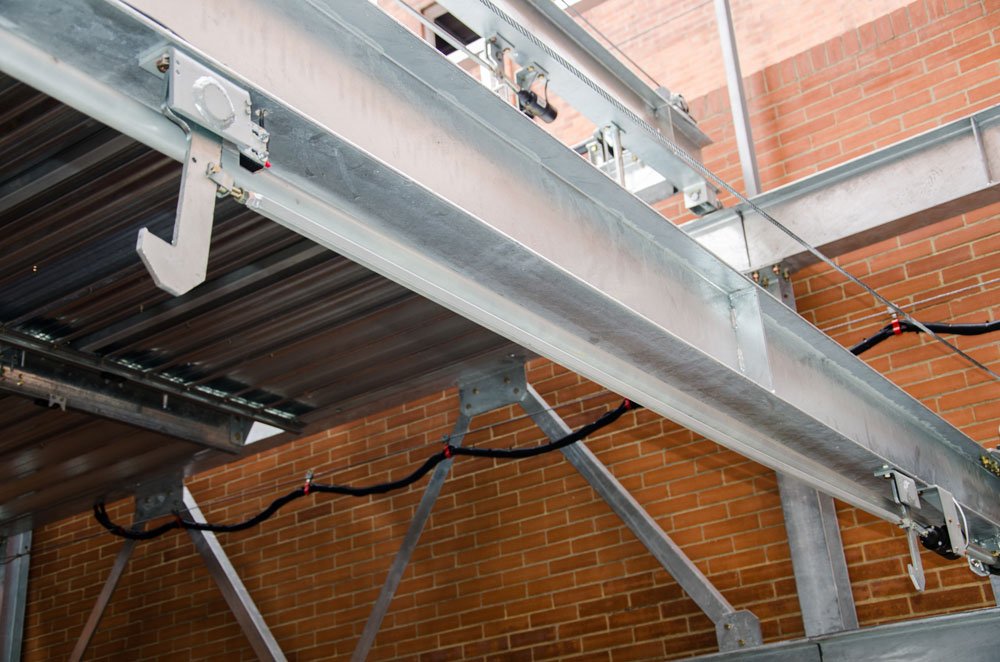 Por otra parte fue diseñado para trabajar en la intemperie, sus componentes estructurales son galvanizados, su parte eléctrica, motores de desplazamiento horizontal, ascenso y descenso cuentan con protección IP55 que resisten inclemencias climáticas como agua y polvo.