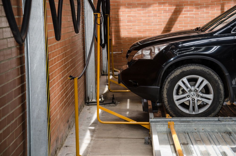 - Sensor fotoeléctrico de detección de movimiento que no permite el funcionamiento del equipo si el auto no ha ingresado totalmente o si alguna persona se encuentra en su recorrido. Este laser la totalidad del ancho del equipo.