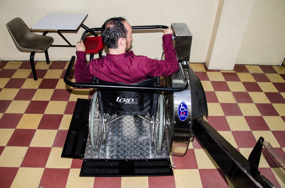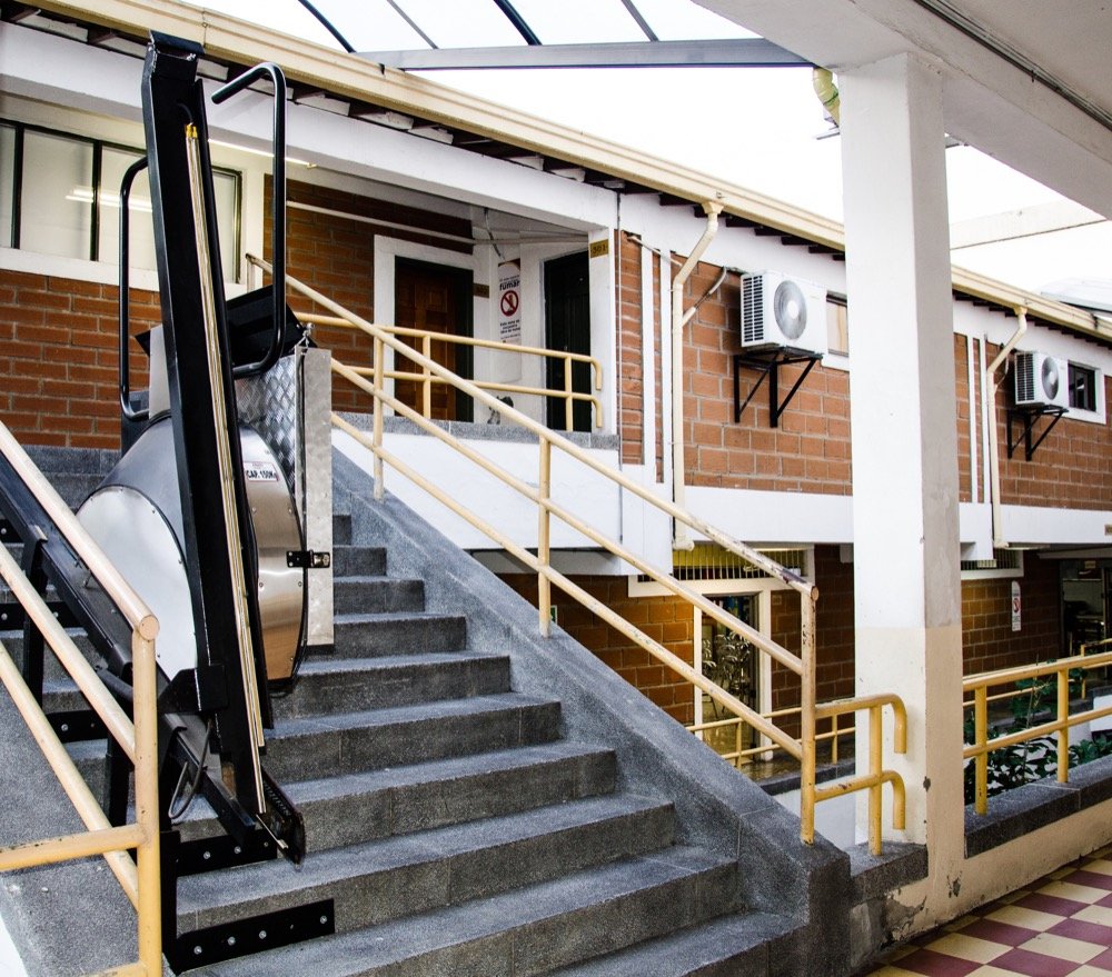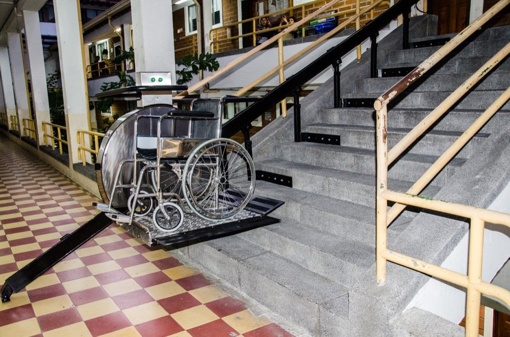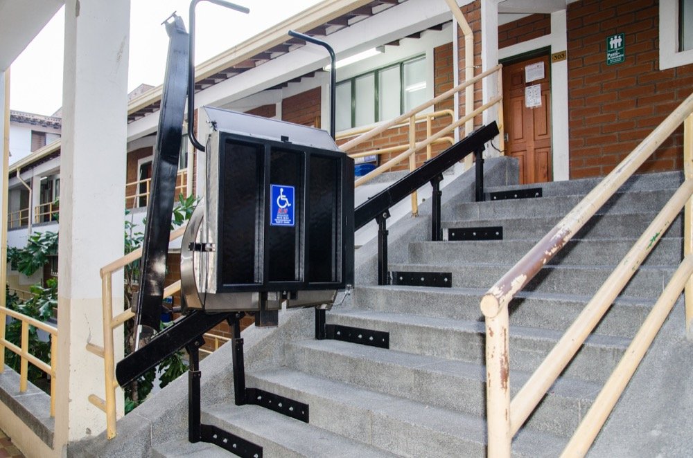 Este equipo fue instalado en la universidad autónoma de Medellín, buscando romper la barrera arquitectónica de la escalera.